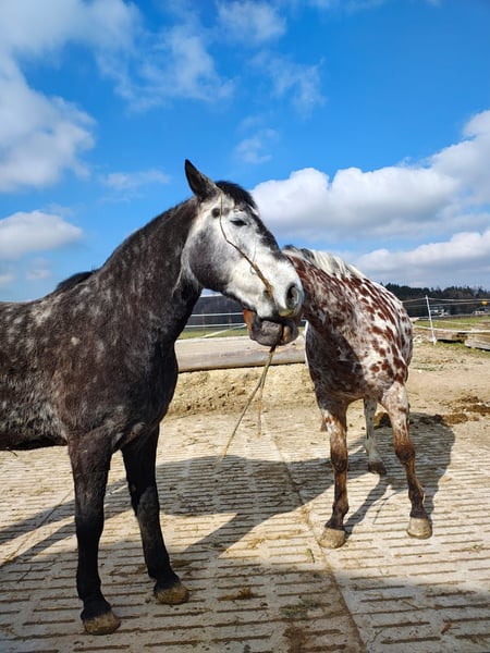 Wir suchen für unseren 7 jährigen witzigen, hübschen und leistungsbereiten Schimmelwallach ein möglichst „für immer“ zu Hause, dass er sich verdient hat. Mit seiner Größe ist er ein ideales Familienpferd oder aufgrund seiner Optik, Coolnes und seinem „Witz“ bestimmt auch für Schowzwecke geeignet. Er ist seit einem Jahr unterm Sattel. Zeitweise auch in vernünftigem Profiberitt. Er kennt viel Bodenarbeit, Platz, Gelände, Verkehr, kleine Sprünge, auch ein Kuschteschirr hatte er schon drauf und will bei seinen Aufgaben immer gefallen. Aufgrund des Ausbildungsstandes nicht für Anfänger geeignet. Später aber bestimmt auch von schwächeren Reitern gut zu reiten. Super bequem zu sitzen, angenehmes Go, mutig. Auf Wunsch mit passendem VS Sattel von Cobra. Keine Erkrankungen bekannt. Fitter und robuster Typ. Regelmäßig beim: Schmied (kennt mit und ohne Eisen - brav beim Beschlagen), Osteo, Sattler, TA (Wurmkur und Impfen, Zähne Sommer 25) Lässt sich verladen und ist auch so für allen Quatsch zu haben. Kennt Offenstall und Box. Ich wünsche mir für ihn aber eine Haltung mit viel Auslauf. (Rang mittel bis hoch) Wenn du denkst das könnte genau zu dir passen, dann melde dich und lerne deinen Traumprinzen kennen. :)