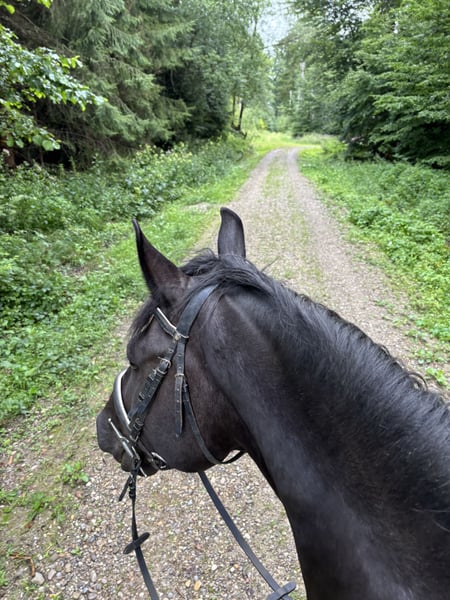 With a heavy heart, I am selling my reliable trail horse. He is 7 years old, 16.1 hh, a Polish Warmblood. The horse is: • Very gentle and easy to handle • Reliable in pair driving • An absolute trail partner in the field – fearless of anything • Trained in dressage However, he is not suitable for dressage competitions, which is why I am reluctantly offering him for sale. He is exactly the kind of horse anyone looks for in recreational riding. I will only sell him to an experienced rider or trail rider! He prefers not to be ridden in dressage more than about once a week; otherwise, there would be no reason to sell him. He tends to be lively in the arena, so he’s less suitable for children, although he would certainly be well-behaved. His favorite way to go is on a long rein in the field, where he moves forward willingly and reliably – a real joy! There’s no objection to a dressage or jumping lesson here and there, but not on a permanent basis. He has no problem standing idle for a week or longer – you can just hop on and go. Only available to an experienced home with a paddock – not suitable for children, beginners, or riding schools. Feel free to contact me with any questions.