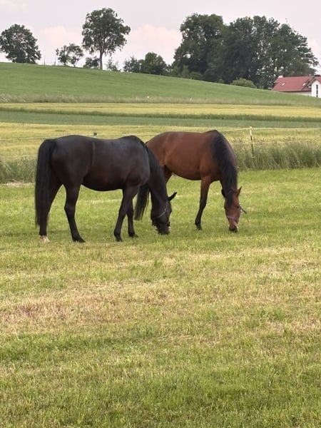 Verkaufe schweren Herzens mein zuverlässiges Verlasspferd. 7 Jahre, 157cm, polnisches Warmblut. Das Pferd ist: • Sehr lieb und einfach im Umgang • Zuverlässig zweispännig gefahren • Im Gelände absolut verlasspferd - hat vor nichts Angst • In der Dressur ausgebildet Für Dressurturniere ist er jedoch nicht geeignet, weshalb ich ihn schweren Herzens abgebe. Eigentlich ein Pferd das jeder im Freizeitbereich sucht. Ich gebe ihn nur ab an Fahrer oder Geländereiter! Er möchte in der Dressur nicht zu oft (ca. 1mal die Woche) geritten werden ansonsten gäbe es keinen Grund ihn zu verkaufen. Auf dem Platz ist er eher triebig deshalb auch weniger für Kinder geeignet obwohl er mit Sicherheit brav wäre. Am liebsten geht er am langen Zügel ins Gelände, hier geht er fleißig und zuverlässig vorwärts und macht einfach Spaß! Sicherlich spricht auch nichts gegen eine Dressur oder Springstunde zwischendurch aber eben nicht dauerhaft. Er hat auch überhaupt kein Problem damit mal eine Woche oder länger zu stehen. Man kann einfach aufsteigen und losreiten. Nur Abgabe an Bestplatz im Offenstall - nicht an Kinder, Anfänger oder Reitschulen. Bei Fragen melde dich gerne.