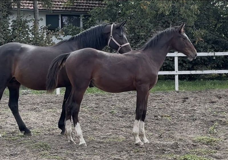 Elegant Hungarian Sport Horse Stallion for Sale Discover a remarkable young talent in the world of equestrian sports! This stunning bay-dark Hungarian Sport Horse stallion, born in 2025, combines athleticism with striking appearance. Standing at 150 cm, he is perfectly suited for competitive jumping and shows great promise for a bright future in the arena. With his refined build, impressive jumping ability, and spirited nature, this stallion is an excellent choice for riders seeking a talented partner to develop and compete. Whether you're an aspiring competitor or an experienced rider, this horse offers both potential and elegance. Don't miss the opportunity to own a quality Hungarian Sport Horse with a promising future. For more information and to arrange a viewing, please contact us.