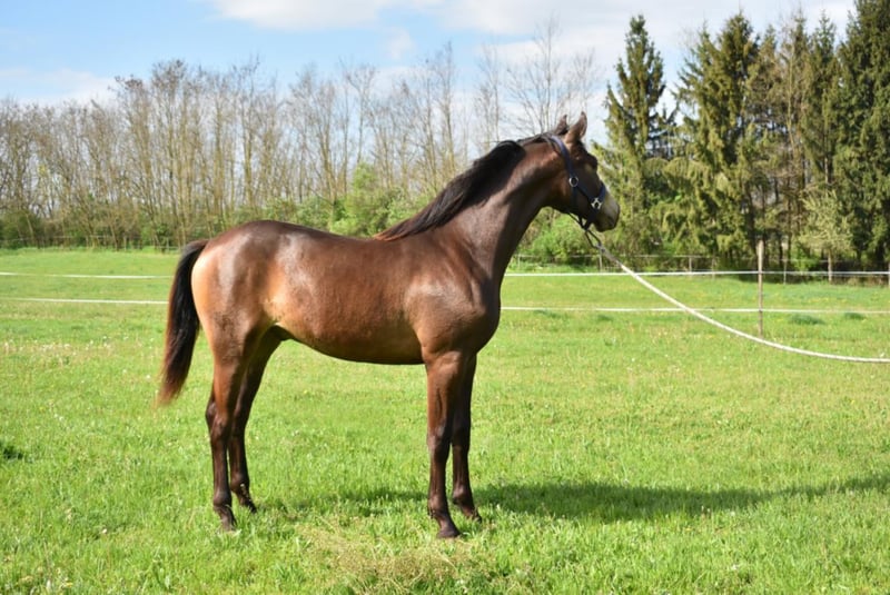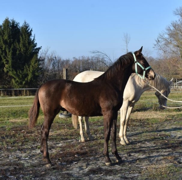 8 months old dark falcon (real smokey black) colts for sale directly from the breeder. He has extra exercise. 30 years in the service of horse breeding! We have several references in the EU!