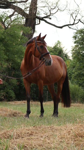 She's looking for a new owner due to a change in our life situation (I'm moving abroad). Hungarian sport horse born in 2011, with excellent pedigree. She is completely healthy, has never had any health problems, and has all the necessary vaccinations. X-rays are available, but in case of serious interest, we will perform a recent medical examination. 162cm with stick, very friendly, easy to transport and handle. Regular participant in show jumping competitions, competed up to 110 cm. Last year she came 2nd in the "advanced large horse category" at the Pony Club National Championship. I recommend her to skilled amateurs and to anyone who wants to develop and learn. She leaves in Hungary, near Budapest. We will send more photos and videos upon request.