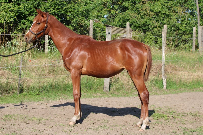 Hübsche, charakterstarke junge Stute von ihrem Züchter zu verkaufen. Sie wächst mit anderen Fohlen, jeden Tag behandelt.