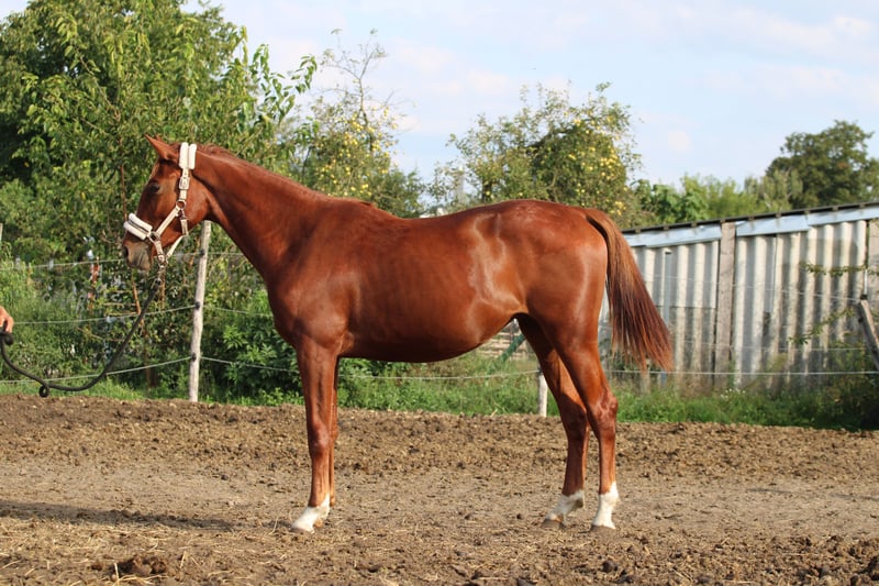 Bella cavalla giovane e di buon carattere in vendita dal suo allevatore. Sta crescendo insieme ad altri puledri, ogni giorno viene gestita.
