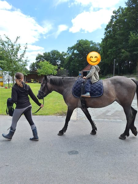 Zum Verkauf steht eine 5 jährige Ungarische Ponystute. Miranda ist ca. 147 cm groß und deckt mit ihrem kräftigen Körpetbau auch größere Reiter gut ab. Sie läuft sicher in allen 3 Gga, kennt Longe und Ausritte. Miranda ist ein sehr entspannter und unkomplizierte Typ und ist kaum aus der Ruhe zu bringen. Bei uns wurde sie von 3 verschiedenen Personen geritten, daher könnten wir uns sie auch super im Schulbetrieb vorstellen. Kinder saßen bereits auch schon problemlos drauf. Sie zeigt sich im Gelände sehr brav. Im Trab ist sie sehr sitzbequem und lässt sich gut an den Zügel stellen. Beim Freispringen zeigt sie einen guten Sprung. Aus zeittechnischen Gründen wurde sie bisher nicht weiter beim Springen gefördert. Wir gehen allerdings davon aus, dass sie sich bei richtiger Förderung sehr gut im Springsport macht. Anhänger fahren und Schmied sind kein Problem. Miranda ist regelmäßig entwurmt worden. Bei Interesse können wir gerne einen Termin vereinbaren, damit Sie Miranda kennen lernen können. Für ein Probereiten berechnen wir 15 € Aufwandspauschale, die beim Kauf natürlich gut geschrieben werden. Gegen Aufpreis kann das Equipment mit abgegeben werden. Preis VB