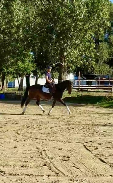 Chloe ist eine schöne Stute, die im Mai 2023 3 Jahre alt geworden ist. Sie hat eine klare tierärztliche Untersuchung und Röntgenaufnahmen. Sie verfügt über hervorragende Grundgangarten und Sprungfähigkeiten. Ihr Großvater ist Kannan, aber auch Stauffenberg und Con Air sind in ihrem Stammbaum zu finden. Sie hat einen ruhigen, freundlichen Charakter. Sie mag es, mit den Leuten zusammen zu sein und sich leicht mit ihnen zu verbinden. Folgen Sie ihrem Anführer problemlos überall und an jeden neuen Ort. Das Laden und Reisen fällt ihr leicht. Ihr Taining hat begonnen: Freispringen, Bodenarbeit, sie kennt das Halfter, Zaumzeug, Gebiss, Sattel, Lounge in 3 Gangarten, Bandage an den Beinen. Gibt ihr 4 Beine, Sie können sie binden. Sie lebt ohne Probleme mit anderen Pferden im Freien, aber sie kennt auch den Innen- und Stall/Box.