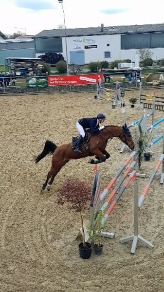 Leider müssen wir aufgrund von zeitlichem Mangel unsere Finis verkaufen. Sie ist eine tolle junge Stute, welche immer gefallen will und gefördert werden möchte. Sie wurde 2023 für unseren Sohn gekauft, er ist mir ihr Geländepferde A und Springen gegangen und hat sie im Vielseitigkeitssport gefördert. Sie ist ein absolutes Verlasspferd im Gelände und springt auch über unbekannte Hindernisse. Aufgrund des Ausbildungsbeginn und der damit verbundene Zeitmangel, wurde Finis im letzten Jahr von unserer 13 jährigen Reitbeteiligung geritten und weiter gefördert. Da aber abzusehen ist, dass mein Sohn weiterhin zeitlich sehr eingebunden ist suchen wir für Finis eine(n) neue(n) Besitzer(in) welche Spaß an der Vielseitigkeit oder im Springen hat und wo sie weiter gefordert und gefördert wird. Sie braucht einen erfahrenen Reiter(in), da sie noch jung ist. Finis trägt Eisen und ist absolut Schmiede- und Verladefromm. Sie wird mit kompletten Zubehör verkauft ( Spring-und Dressursattel, Gamaschen, Decken...). Bitte nur bei ernsthaften Interesse bitte per Whatsapp melden, da ich nicht immer telefonisch erreichbar bin. Wir verkaufen unsere Finis nur in sehr gute Hände, da sie ein wirklich tolles Pferd ist.