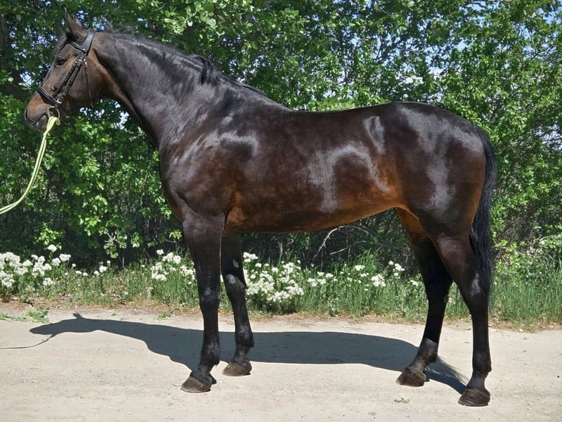 Auf dem Bild ist eine 2018 geborene, 1,68 Meter große ungarische Warmblutstute zu sehen. Sowohl ihr Vater als auch ihre Mutter waren in Ungarn erfolgreich im Springreiten, in der Dressur und in der Vielseitigkeit. Sie wurde auf unserem eigenen Hof geboren und bis zu einem Alter von 3,5 Jahren im Offenstall zusammen mit anderen Pferden aufgezogen. Anschließend kam sie in unseren Reitbetrieb, wo unter Anleitung erfahrener Reiter ihre fachgerechte Ausbildung begann. Nach Abschluss ihrer Ausbildung wurde sie hauptsächlich als Freizeitpferd genutzt. Sie nahm regelmäßig an Amateur-Dressur- und Springturnieren teil und erzielte mit ihrer konstanten und zuverlässigen Leistung gute Ergebnisse. (In der Dressur startete sie auf L-Niveau, im Springen auf Amateur-Niveau 90–110 cm). Seit ihrem vierten Lebensjahr wird sie regelmäßig sowohl im Gelände als auch in städtischer Umgebung geritten und verfügt daher über umfangreiche Erfahrung im Ausreiten. Sie ist sowohl in der Stadt als auch auf dem Land leicht zu reiten, da sie mutig, furchtlos und in jeder Situation ruhig und ausgeglichen bleibt. Sie arbeitet aufmerksam mit ihrem Reiter zusammen und reagiert zuverlässig auf die Hilfen. Im Gelände springt sie geschickt über Baumstämme, Gräben und andere natürliche Hindernisse. In letzter Zeit hat sie auch Erfahrung im ein- und zweispännigen Fahren gesammelt und könnte dank ihrer hervorragenden Anlagen auch im Fahrsport erfolgreich sein. Sie verfügt über außergewöhnliche mentale und körperliche Eigenschaften sowie ein wunderbares Temperament: ruhig, freundlich, intelligent, lernwillig, aufmerksam und kooperativ. Auch in unbekanntem Gelände zeigt sie stets ein ausgeglichenes, zuverlässiges und selbstsicheres Verhalten. Ihr Körperbau ist harmonisch, muskulös und proportional. Ihre hervorragenden Grundgangarten sowie ihr sehr gutes Springvermögen sind beeindruckend. Sie ist in jeder Hinsicht vollkommen gesund. Sämtliche tierärztlichen Unterlagen sind vorhanden, einschließlich Röntgenbildern. Diese wunderbare Stute ist äußerst vielseitig und somit die ideale Wahl als Familienpferd. Sie eignet sich hervorragend für Anfänger, Kinder, Amateure und ambitionierte Freizeitreiter, ist aber auch ein großartiger Partner für jüngere und ältere Reiter, die ein sicheres, leicht zu handhabendes und gut ausgebildetes Pferd suchen. Auch für Liebhaber des Fahrsports ist sie eine ausgezeichnete Wahl. Auch für die Zucht ist sie geeignet: Ihr Fohlen erhielt bei der ungarischen Hengstkörung eine öffentliche Deckgenehmigung. Das Pferd befindet sich in 5630 Békés, Ungarn. Besichtigungen und Probereiten sind nach Terminvereinbarung auf unserem Hof möglich. Transport kann auf Anfrage organisiert werden. Für weitere Informationen, Fotos oder Videos kontaktieren Sie uns bitte. Telefon und WhatsApp: +36 30 070 17 84 Referenzen sind europaweit verfügbar!