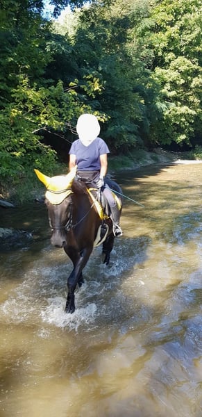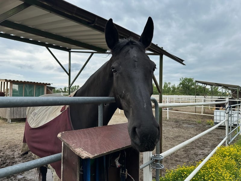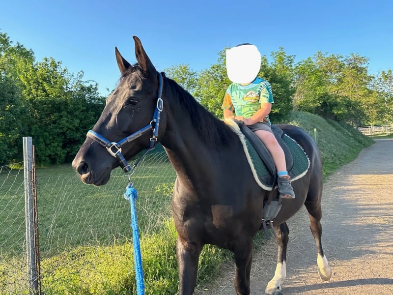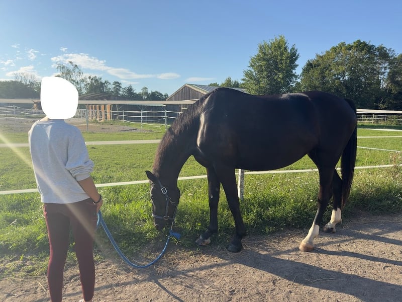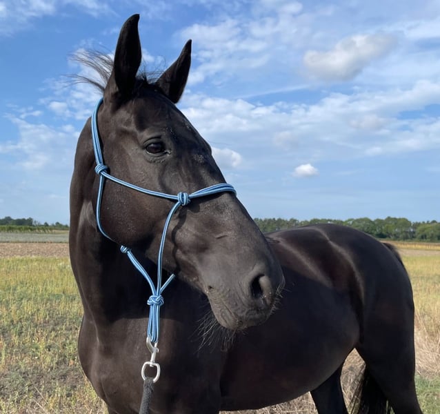 Aus Zeitmangel steht eine liebe und vielseitig veranlagte 9-jährige Rappstute für ambitionierte Freizeitreiter zum Verkauf. Sie macht regelmäßig Dressurarbeit, Sprunggymnastik und Bodenarbeit und geht brav ins Gelände (allein oder in der Gruppe). Sie hat schöne Grundgangarten und zeigt sich sehr geschickt am Sprung. Sie ist gut erzogen, brav und unkompliziert im Umgang und sehr verträglich mit anderen Pferden. Verlade- und schmiedefromm. Bei ernsthaftem Interesse stehe ich gern für weitere Informationen zur Verfügung. Probereiten nach vorheriger Absprache möglich.