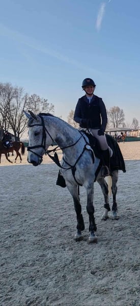 Na sprzedaż: 8-letnia klacz sportowa HSH Ojciec: Indroctro C Wysokość: 169 cm Wysokość w kłębie: 110 cm Doświadczona klacz startująca w zawodach. Na ostatnich zawodach zajęła 3. miejsce, pokonując trasę bez błędów (0 punktów karnych). Jest w pełni zdrowa i regularnie szczepiona. Posiada bardzo dobry, zbalansowany canter, jest łatwa i komfortowa w jeździe, co czyni ją odpowiednią zarówno dla początkujących, jak i dla jeźdźców amatorów. Szczera, chętna do pracy i przyjemna w obsłudze zarówno na ujeżdżeniu, jak i podczas skoków. Transport możliwy do zorganizowania. Świetna relacja jakości do ceny. Więcej filmów na WhatsApp +36 703 969 537
