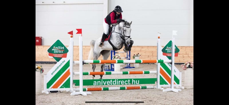 For sale: 8-year-old HSH sport mare Sire: Indroctro C Height: 169 cm Withers height: 110 cm Experienced competition mare. At her most recent show she finished 3rd place with a clear round (0 faults). She is completely healthy and up to date with all vaccinations. She has a very good, balanced canter, is easy and comfortable to ride, making her suitable for beginners as well as amateur riders. Honest, willing, and pleasant to work with both on the flat and over fences. Transport assistance available. Excellent value for money More video whatsapp +36703969537