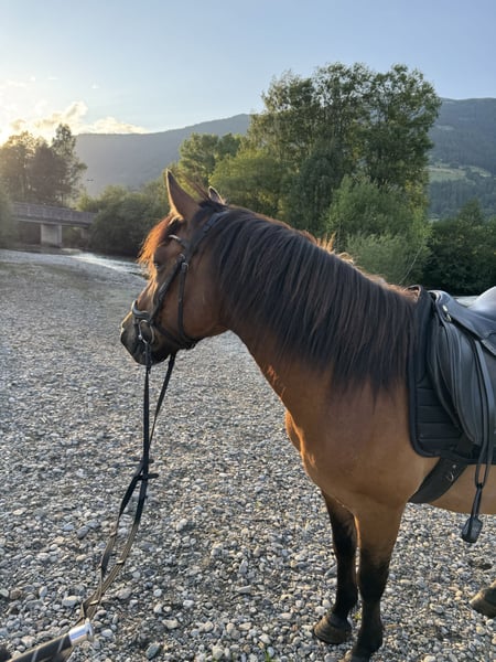 Huzule | Wallach | 9 Jahre | 143 cm | gebisslos geritten | Standort: Salzburg-Land | Es gibt Pferde, die man reitet – und es gibt Pferde, mit denen man durchs Leben geht. Mein Huzulenwallach gehört zur zweiten Sorte. Er ist ein ehrliches, naturverbundenes Pferd, das sein Glück im Gelände findet. Gemeinsam über Wiesen traben, durch Wälder streifen, am langen Zügel durchatmen – das ist seine Welt. Wenn er seinem Reiter vertraut, geht er auch alleine souverän ins Gelände, aufmerksam, zuverlässig und fein an Stimmkommandos zu reiten. Er kann sowohl mit Trense als auch gebisslos geritten werden, fühlt sich mit dem Hackamore aber deutlich wohler und arbeitet damit feiner mit. Er ist gesund, klar im Kopf und liebt Abwechslung: kleine Sprünge, Bodenarbeit, neue Aufgaben – all das macht ihm Freude. Nur auf dem Platz möchte er keine Runden drehen – das ist einfach nicht „sein Ding“. Ich wünsche mir für ihn jemanden, der genau das schätzt: ein Freizeitpartner, der Freude an gemeinsamen Ausritten hat. Er kann am Reitplatz auch von Anfängern geritten werden, ist aber kein reines Kinderpferd. Einzig alleine im Gelände benötigt er einen souveränen Reiter, dann ist er ein absolut verlässlicher Begleiter. Zu zweit ist er im Gelände total unerschrocken und brav. Perfekt für größere Kinder, leichte Erwachsene, Wiedereinsteiger. Weil mir aktuell die Zeit fürs gemeinsame Ausreiten fehlt und ich mich reiterlich in eine andere Richtung entwickle, suche ich für ihn einen Lebensplatz, an dem er das tun darf, was er am meisten liebt: mit seinem Menschen durchs Gelände streifen. Zubehör, das auf ihn abgestimmt ist, kann bei Interesse gerne mitgegeben werden.
