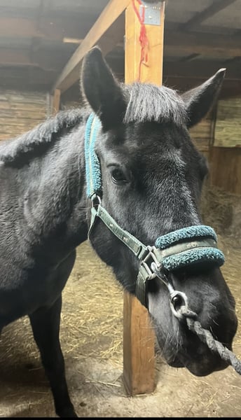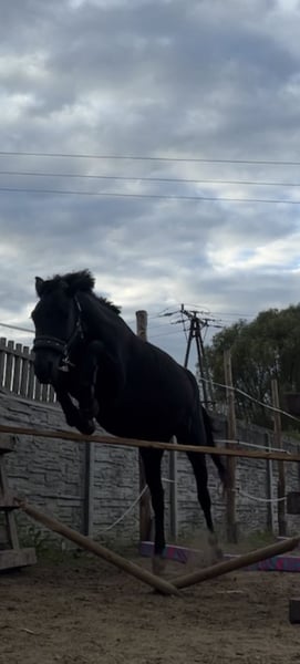 Witam, sprzedam/lub zamienię zgrabną i bardzo inteligentną klacz huculska Amelka (Goral). - ma 4 lata, ok.135 w kłębie, Prawidlowe kopyta, zdrowa, duża odporność - urodziła źrebaka 7 msc temu, przekazuje bardzo dobre geny i dobrą głowę, jest bardzo dobrą matką. Źrebak po niej jest elektryczny, ładny lekki ruch, bardzo skoczny, szukający kontaktu z ludźmi, gruba sierść, bardzo gęsta grzywa i ogon - na padoku bezproblemowa, unika sprzeczek -dostałam ją jak była w stanie surowym, nauczyłam ją całych podstaw -czyszczenie, podawanie kopyt, odczulanie, lonża, początki zajeżdżania, wyjazdów w teren - kobyłka jest elektryczna ale bardzo spokojna, na stanowisku można ją zostawić a ona będzie stać bez ruchu, na spacerach bardzo spokojna z ręką na sercu można dać dziecku i wiem że nic nie zrobi i będzie grzecznie szła ( u nas chodzi często jako koń czołowy ze względu na swoją odwagę i niepłochliwość), jest totalnie bombo odporna. Grzecznie chodzi na lonży, nie ma problemu z zakładaniem sprzętu, jest w trakcie zajeżdżania (póki co stęp i kłus) ale i tak przyjmuje niedoświadczonych jeźdźców - do każdego jest bardzo kochana i przyjazna - bardzo skoczna i szybka, kocha skakać. W korytarzu sama leci aby skoczyć (pierwszy raz w korytarzu skoczyła 85 cm z możliwościami na dużo więcej) bardzo dobra technika skoku. W przyszłości napewno dobrze się sprawdzi w skokach jak i zawodach - filmiki i zdjęcia wysyłam na Messenger lub Whatsapp, do wglądu również ruch źrebaka - sprzedaje z bólem serca ze względu na potrzebę czegoś większego - więcej info na pv, cena do lekkiej nego :)