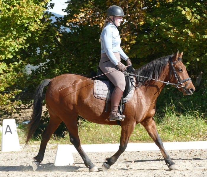 Huzule Premium Breeding Mare – Performance Tested! 6-year-old dark bay, 14.8 hh. A large, strong mare with excellent pedigree, balanced temperament, good conformation, and very good training. Suitable for dressage (KL L) and jumping (KL A); ridden and driven, confident and fearless in the field – even alone. Has completed trail rides, has tournament experience including the Huzule Trail, and is experienced in basic schooling with children. Also an excellent lunge and therapy horse, very willing, attentive, and calm during work. Very well-behaved and relaxed in handling. Suitable as a weight-carrying horse and for therapeutic use, also ideal for re-entrants. An all-round perfect horse for all disciplines! Farrier and loading well-behaved, suitable for open stalls, compatible with herd life.