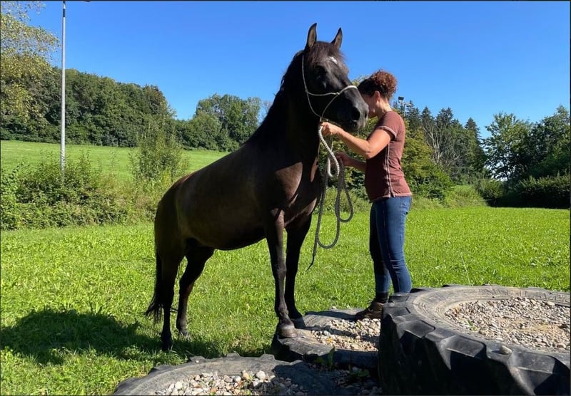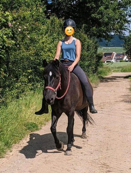 Panka ist eine hübsche Huzulenstute und wurde schonend ausgebildet. Sie ist fein zu reiten und sehr bequem. Panka ist dem Menschen unheimlich zugewandt und arbeitet gerne mit, sie ist lernwillig, hat jedoch einen ausgeprägten Charakter und testet gerne ihren Menschen anfangs aus, weshalb ich sie keinem Anfänger geben möchte. Wenn man ihr klare, freundliche Grenzen aufzeigt, akzeptiert sie diese anstandslos. Panka wird aktuell gebisslos geritten und ist unbeschlagen. Panka ist ein toller Freizeitpartner - sie macht jeden Blödsinn mit, da sie unerschrocken und neugierig ist. Ich könnte sie mir auch sehr gut als Therapiepferd vorstellen, da sie sehr kinderlieb, verschmust und unerschrocken ist und kein Problem damit hat, wenn man auf ihr turnt. Beim Vorbesitzer wurde sie wohl auch gefahren. Sie lässt sich problemlos verladen und ist auch sonst sehr umgänglich. Sie braucht eine konsequente Hand, durchschnittliche reiterliche Fähigkeiten sind ausreichend. Ich verkaufe sie umständehalber nur schweren Herzens, da mein Mann vor Kurzem verstorben ist und ich meine Pferdehaltung aufgeben oder zumindest sehr stark einschränken muss. Entsprechendes Zubehör kann gegen Aufpreis mit übernommen werden.
