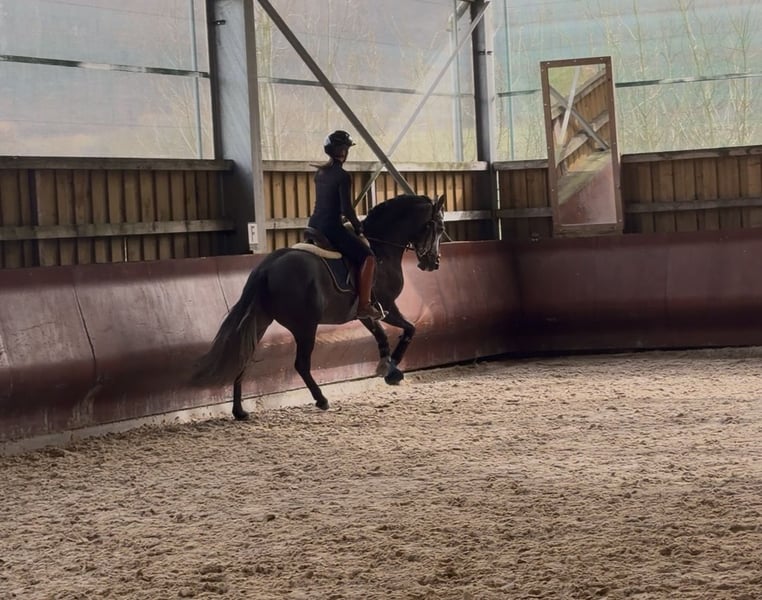 Schöner 4-jähriger P.R.E. Hengst, seit einigen Wochen schonend unter dem Sattel. Er zeigt sich sehr kopfklar, freundlich und mit einer angenehmen Einstellung zur Arbeit. Für sein junges Alter ist er ausgeglichen und macht täglich positive Fortschritte. Der Hengst verfügt über drei gute bis sehr gute Grundgangarten mit viel Qualität. Der Schritt benötigt aktuell noch etwas Zeit zum vollständigen Loslassen, was alters- und ausbildungsbedingt ist. Trab und Galopp zeigen sich aktiv, gut ausbalanciert und mit schöner Mechanik. Er ist unkompliziert im Umgang, brav im täglichen Handling und vermittelt dem Reiter ein sicheres Gefühl. Gute Röntgenbilder sind vorhanden. Der Hengst steht derzeit in Luxemburg und kann nach Absprache gerne vorgestellt werden.