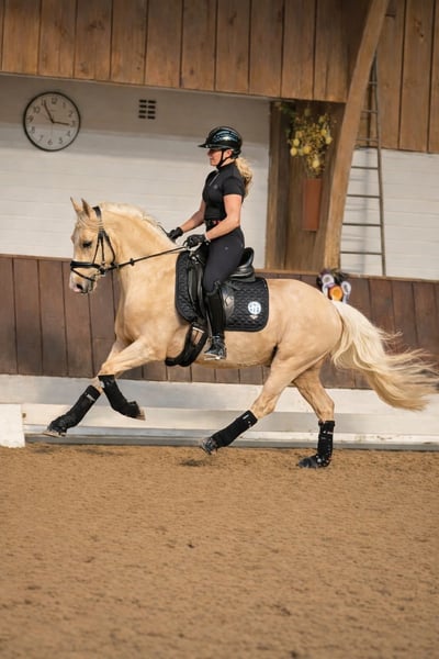 This absolutely wonderful gelding, sired by Diamond Touch NRW, is looking for his dream home. Video link: https://youtube.com/shorts/FgbQpGwQo3c?si=SWBXOkjkzYgBheLd He has been solidly backed in a calm manner and has never taken a wrong step. Whether in the indoor arena, on the jumping course, or during a ride around the block, he demonstrates his excellent character. He is well-behaved even with a pad and has been easy to handle from a young age, including by smaller children. He remains relaxed in his box when cuddling with kids but is sensitive enough under saddle to realize his potential in FEI sport. He happily jumps small fences, and we expect him to perform just as well in competitions as he does at home, bringing home ribbons in dressage tests. He covers well (rider in the pictures is 1.68 m) and is easy to handle and ride on the reins. This dream horse exhibits three very good basic gaits with FEI potential. He is very well-behaved at the blacksmith – even during his first shoeing – and was relaxed without sedation for trimming. Good X-ray images, including of the back, are already available. A dream pony for a mother-daughter team or siblings, where a rider can further develop this wonderful pony. Videos and more information at: 0177 275 9886 Instagram: https://www.instagram.com/s/aGlnaGxpZ2h0OjE3OTA5OTYzNDQyMjI2MzM4?story_media_id=3727113648335528103_7420643624&igsh=MTJteDBpYTU5Mmc3dA==