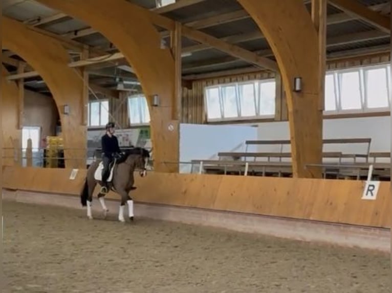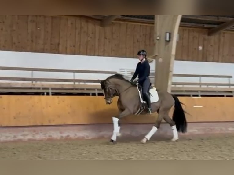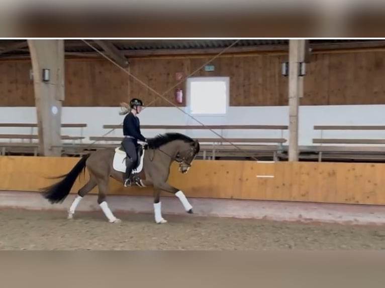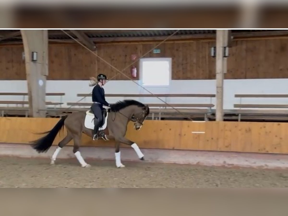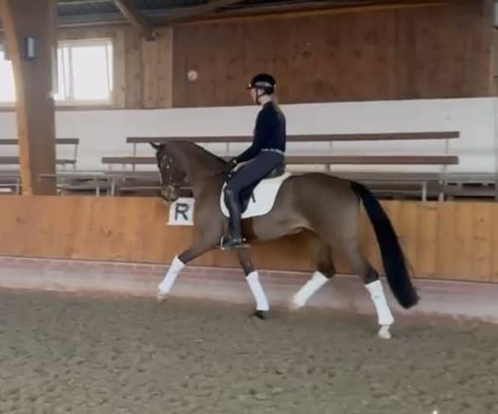 5-year-old Hanoverian mare from the breeder "Von und Zu" – Don Bosco x Prince Thatch xx Noble Hanoverian mare, linebred to the grand sire "Prince Thatch xx," candidate for premium status, with excellent dressage aptitude, combined with good rideability and a friendly, human-oriented nature. Notably, she has an active hindquarters with an outstanding walk. Her training was approached in a calm, trust-based manner by an amateur rider and show jumper, providing a solid foundation for her further development. A raw diamond with great potential for sport or leisure riding. Half-siblings have already achieved success up to multiple Grand Prix victories. Very good X-ray results. Tel. 0171 9901553