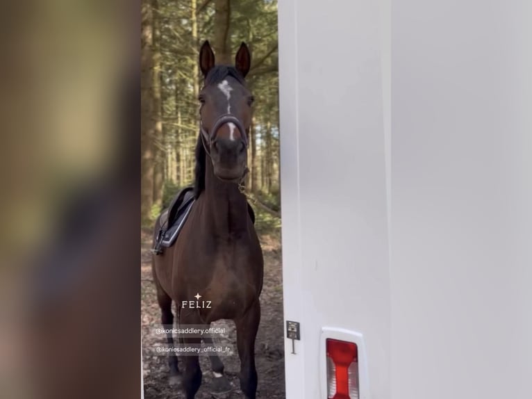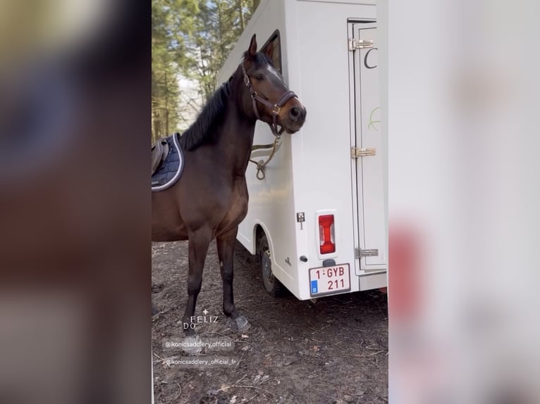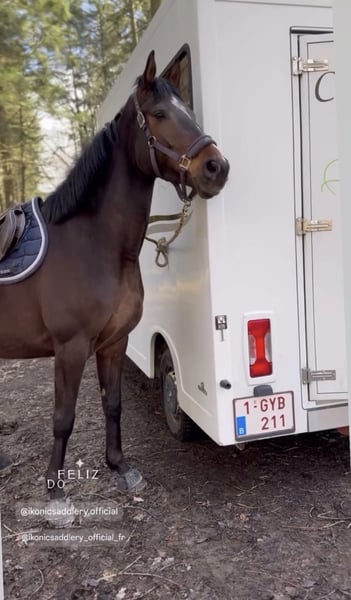 Denzel est un superbe cheval bai brûlé de 5 ans, toisant environ 1m68. Il séduit immédiatement par son modèle harmonieux et son regard doux, mais aussi par son caractère particulièrement attachant. C’est un cheval qui apprécie énormément le contact humain : il adore qu’on s’occupe de lui et se montre très agréable dans toutes les manipulations du quotidien. Aux soins, il est facile et coopératif, ce qui le rend très confortable à vivre au jour le jour. Denzel est monté en extérieur. Il est extrêmement sûr aux trois allures, avec un mental posé et rassurant. C’est le genre de cheval qui met en confiance, passant partout sans hésitation. Il possède une bonne bouche, est à l’écoute et toujours volontaire. Il apprécie également les moments au pré, notamment en compagnie d’autres chevaux. Une vie au grand air, même à l’année, lui conviendrait parfaitement. Très sociable, il s’entend bien avec ses congénères, se montre respectueux des clôtures et adopte une attitude calme dans le troupeau, préférant se mettre en retrait face aux chevaux dominants. Denzel est donc un compagnon idéal pour quelqu’un à la recherche d’un cheval sûr, gentil et facile pour faire de belles balades et partager une vraie relation au quotidien. 🐴✨