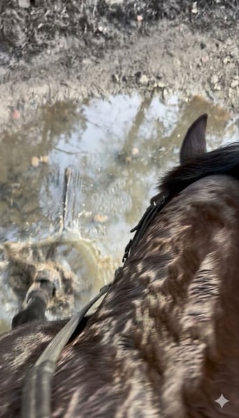Denzel is a stunning 5-year-old liver chestnut gelding, standing approximately 16.1 hh. He immediately captivates with his harmonious conformation, gentle expression, and particularly endearing personality. He is a horse that thrives on human interaction: he loves to be cared for and is very pleasant to handle in all daily manipulations. During grooming and tacking, he is easy and cooperative, making him very comfortable to live with on a daily basis. So far, Denzel has been ridden outdoors. He is extremely confident in all three gaits, with a calm and reassuring mindset. He is the type of horse that inspires trust, confidently passing everywhere without hesitation. He has a good mouth, is attentive, and always willing. He also enjoys time in the paddock, especially in the company of other horses. A life outdoors, year-round, would suit him perfectly. Very sociable, he gets along well with his peers, respects fences, and maintains a calm attitude within the herd, often preferring to keep a low profile in the presence of dominant horses. Denzel is therefore an ideal companion for someone looking for a safe, gentle, and easy horse for enjoyable rides and a genuine daily relationship. 🐴✨