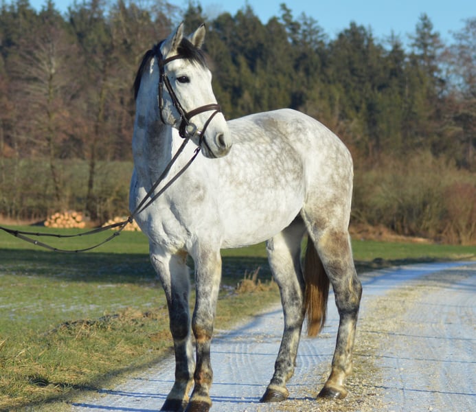 Schöner Apfelschimmel Wallach aufgrund unklarer ab und zu wiederkehrender leichter Lahmheit zu verkaufen. Sehnen, Fesselträger, Hufrolle, Strahlbein wurde alles mittels Ultraschall und Röntgen abgeklärt und ist unauffällig. Vermutung liegt bei leichtent Fehlstellung des Beins. Beim reiten im Gelände oder Platz, sehr unkompliziert, unerschrocken, klar im Kopf. Geht ohne Probleme alleine raus. Es wurden auch Kinder im Alter von 3 bis 11 Jahren auf ihm geführt. Im Umgang kein Anfänger oder Kinderpferd. Braucht eine pferdeerfahrene Person, die sich durchsetzen kann und keine Unsicherheit zeigt. Ansonsten kann es zu beißen oder schlagen kommen. Mehr dazu gerne persönlich. Kennt Box und Offenstall, mit anderen Pferden sehr verträglich..