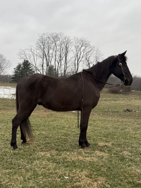 "AVAILABLE ON ONLINE HORSE AUCTION AT www.MagicHorseAuction.com BIDDING OPEN NOW thru TUESDAY | FEBRUARY 3RD! BUY IT NOW AVAILABLE! *Final price will be determined on auction site* CONSIGNOR CONTACT INFO: Brandenburg Stables : Zach Brandenburg #513-508-3684 LOCATION: Moscow, Ohio Shadow is a handsome black Kentucky mountain gelding that is 14 years old and stands 15 hands tall. This is a seasoned trail horse that has been there done that and it is absolute drama free.. This is a very willing horse that aim to please hand is truly just like having the day off of work to be around.. he has a smooth gait and is very easy to sit, he listens well am never retaliates or 2nd guesses his rider. Just point and go. He is an easy keeper and gets along with other livestock. Shadow has been trail ridden and is traffic safe. If you’re looking for low maintenance and easy to enjoy here he is!
