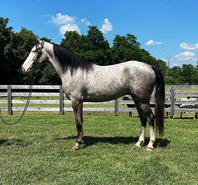 Stone’s Mtn Man aka amigo is a 4 year old kentucky mountain gelding that stands 15 hands tall with perfect conformation, I got amigo from the man that raised him and still owns his sire and mother, amigo out of the undoubtedly one of the best trail riding stallions alive, he is a beautiful dapple gray horse that is every trail riders dream and he passes those qualities on to his offspring, his colts are known for being well minded and unbelievably smooth gaited and amigo is no different. Amigo is selling with a completed KMSHA application for registry. Aside from his breath taking looks this horse has many great qualities to offer, like I said before he is well minded, he doesn’t get shaken up and uneasy over little none sense, he stays cool calm and collected in situations where most horse are wanting to get out of town, when you talk about a smooth gaited horse that doesn’t move you in the saddle at all, you’re talking about horses like Amigo, From a walk all the way to top speed you do not move in the saddle making those long weekend trail rides enjoyable at any age. He is a friendly horse on the ground and is easy to be around. Amigo is very well mannered and over all a very honest horse that is easy to get along and certainly easy on the eyes!