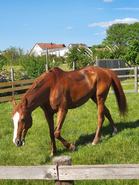Herzensmensch gesucht: Treue Kisber Stute (22 J.) als Beisteller abzugeben. Wir suchen für unsere charmante Kisber Stute ein neues, liebevolles Zuhause auf Lebenszeit. Nach vielen Jahren treuer Dienste, unter anderem als geschätztes Reitschulpferd, darf sie nun ihren wohlverdienten Ruhestand genießen. Das Wichtigste auf einen Blick: Rasse: Kisber (ungarisches Halbblut) Alter: 22 Jahre Charakter: Absolut umgänglich, nervenstark und anfängerfreundlich. Zustand: Altersentsprechend fit, zeigt sich im Umgang stets motiviert und lauffreudig. Ein Herz aus Gold Sie ist der Inbegriff eines Verlasspferdes. Ob Putzen, Schmied oder Tierarzt – sie ist in jeder Situation brav und zeigt sich von ihrer besten Seite. Durch ihre Vergangenheit im Schulbetrieb bringt sie eine enorme Gelassenheit mit und ist im Umgang auch von Anfängern oder Kindern problemlos zu händeln. Abgabe-Bedingung: Nur als Beisteller Da uns ihr Wohlbefinden am Herzen liegt, wird sie ausdrücklich als nicht reitbarer Beisteller verkauft. Sie möchte zwar noch gerne etwas tun (Spaziergänge, Bodenarbeit, Schmusen), soll aber keine Reiterlast mehr tragen müssen. Sie eignet sich ideal als Gesellschaft für ein anderes Pferd oder für Menschen, die einfach die Zeit mit einem wunderbaren Wesen am Boden genießen möchten. Großes Zubehörpaket inklusive Damit sie gut in ihr neues Leben startet, bringt sie ihr gesamtes Equipment mit: Zwei Sättel Diverse Pads und Schabracken Weiteres Zubehör