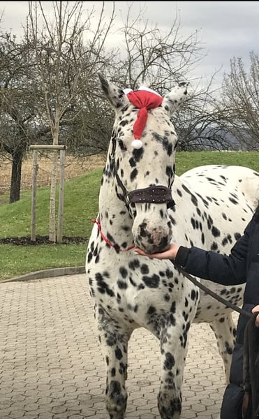 Przepiękny ogier Knabstrupper, 13 lat, 165 cm wzrostu, w pełni zdrowy, poszukuje nowego domu. Ze względu na zakończenie kariery sportowej z powodów zdrowotnych, wraz ze wszystkimi akcesoriami (siodło, ogłowie, różne uzdy, derki, ochraniacze na kopyta itp.) jest do oddania. Monti to prawdziwa dusza, niezwykle przyjazny i spokojny. Jest absolutnie pewny w terenie i dobrze wytrenowany. Zgadza się z innymi końmi, zarówno z ogierami, jak i z klaczami, a także z psami, dziećmi i wszystkim, co może się pojawić w codziennym życiu. Ma niską hierarchię, jest towarzyski w stadzie i nie jest zanieczyszczony. Szukamy dla niego domu z rodzinnym klimatem, gdzie będzie widziany i kochany. Ze względu na lekką ataksję (zwężenie 2/3 kręgów szyjnych), która towarzyszy mu od zawsze, nie nadaje się na sportowego konia i nie jest sprzedawany jako koń sportowy. W codziennym użytkowaniu nie ma żadnych ograniczeń i jest ogólnie zdrowy. Zna zarówno teren, jak i ujeżdżalnię, pracę na ziemi, naukę jazdy dla dzieci, był wyprowadzany jako młody koń, a także jeździł w zaprzęgu jako koń prowadzący (nie jeżdżę nim już sam). Chętnie udzielę dodatkowych informacji osobiście. Zajęcie w szkoleniu lub handel są bezcelowe! Monti zostanie oddany tylko w najlepsze ręce, jeśli znajdzie się odpowiedni dom.