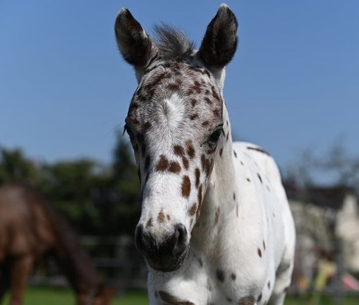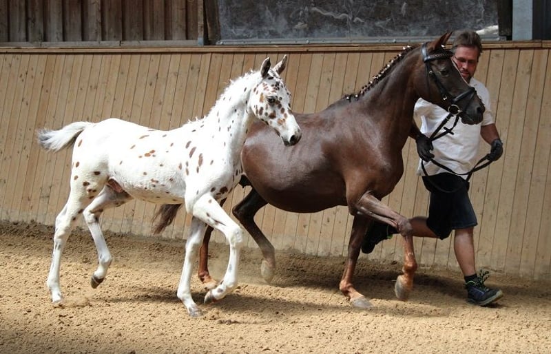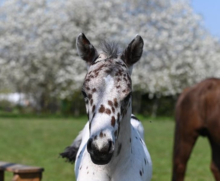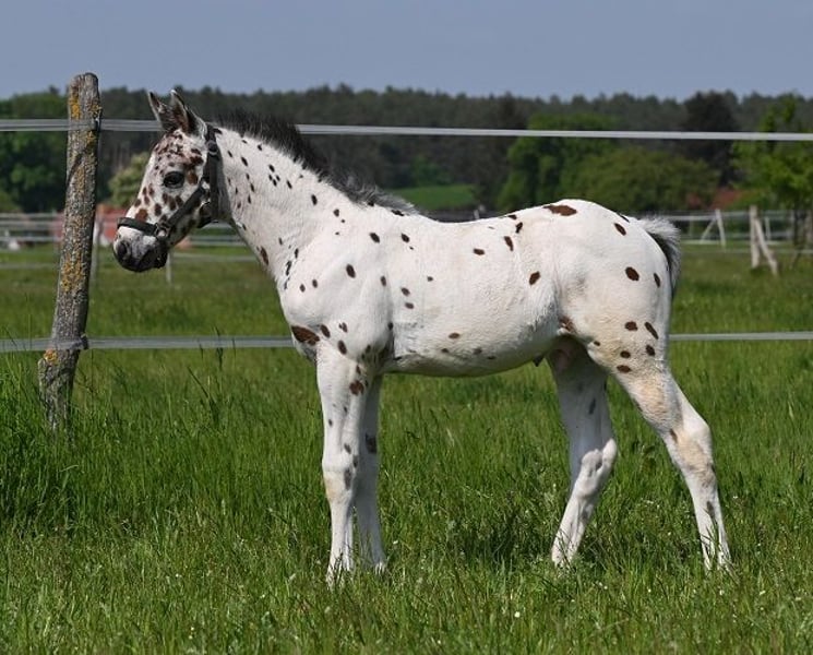 Typvoller Tigerscheck-Wallach (3 Jahre) von Carlsson vom Dach (Knabstrupper, 163 cm) aus der Schwedenlindes Jenny (Welsh B von Tassilo, 140 cm) mir sehr guten GGA. Bei diesem Hingucker in Sonderlackierung sind die Punkte gut gefallen. Mutter Schwedenlindes Jenny brachte schon viele doppelveranlagte, erfolgreiche Sportponys, Staatsprämienstuten, sowie gekörte Hengste und ist selbst mit Kindern im Spring-Parcour erfolgreich gestartet. Geschätzt wird er ca. 154-158 cm groß werden. Bei Interesse melden Sie sich bitte nur telefonisch, per SMS oder Whats App unter der Nummer 0049 1725488966.