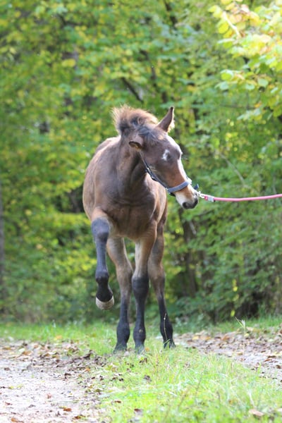 Luke vom Storchenmoos Date of Birth: 01.06.2025 Father: Löwenherz Mother: Thalia of Yore Mother/Father: Baldur aus der schützenden Hand Brown (does not change color) Estimated final height approx. 1.57m Luke is a very sweet, beautifully built little man. He already knows how to move and gets along very well in the herd. Sometimes, however, he still becomes the little mama's boy, using her, the boss, as a hiding place when he crosses a boundary with another herd member. He will be regularly dewormed, have seen the farrier, and will have received at least a tetanus vaccination by the time he leaves around December 2025. Additionally, he should have learned his foal ABC, including halter training, tying up, and being familiar with the trailer. Last two photos, mother and father.