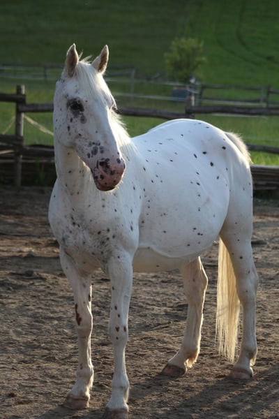 Luke vom Storchenmoos Wysokość końca ok. 1,58 m Ojciec: Löwenherz Matka: Thalia of Yore Luke to przepiękny, łagodny koń. Jest ujeżdżony na lonży, doskonale znosi czyszczenie i zapinanie na uwiązie. Już towarzyszy swojej mamie na spacerach. Spędza dużo czasu z sześcioma towarzyszami zabaw, ucząc się tym samym, jak być społecznym koniem w stadzie. Luke jest bardzo przytulny i chętnie nawiązuje kontakt z człowiekiem, gdy tylko ktoś wejdzie na padok lub pastwisko. Prezentuje się jako piękny knabstrupper, jakiego się kocha – bez punktów na sierści, co, jak zapewne wiedzą znawcy tej rasy, ma swoje zalety! Ma ładne chody i będzie sprawiać przyszłemu właścicielowi wiele radości. Posiada również pochodzenie, charakter oraz jakość, które predestynują go na przyszłego ogiera reprodukcyjnego dla zainteresowanych. Jako wałach, ma jednak jeszcze więcej możliwości w zakresie użytkowania! Jeśli są Państwo zainteresowani osobistym spotkaniem, chętnie się odezwę. Jego matka jest koniem z prestiżową odznaką, a ojciec to licencjonowany, wyczynowo sprawdzony knabstrupper. Oba mają świetne pochodzenie i znakomity charakter. Oba można obejrzeć w stajni! Przewidywany termin wyjazdu to grudzień 2025. Będzie regularnie odrobaczony, zgłoszony do podkuwania, zaszczepiony przeciwko tężcowi oraz przejdzie podstawowe szkolenie, obejmujące m.in. naukę prowadzenia na lonży, zapinania na uwiązie i korzystania z przyczepy. Ostatnie dwa zdjęcia przedstawiają matkę i ojca.