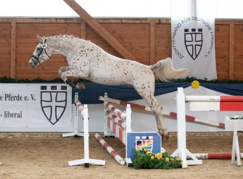 Pa' Dora Diamant af Eichlgütl Registered with the ZfdP. Sire: Knabstrupper, ZfdP Studbook 2, Benz' Indiana Jones, with old Danish bloodlines dating back to the 18th century. LP / Lp, PATN1 / Patn1. Dam: Knabstrupper, Pippi, registered with the ZfdP. LP / Lp. Dora’s coat color development is still unpredictable. Dora Diamant, named after Franz Kafka’s last girlfriend and born in Kafka’s birth year (June 17, 2024), is a filly with a strong human affinity and exceptionally good nerves. She already loads independently into the horse trailer, is familiar with river bathing, and is completely fearless otherwise. Typical for the Knabstrupper breed, she has a very clear mind and also the characteristic stubbornness. Since birth, she has been raised in a herd with her mother (lead mare) and several other young horses in an open stable environment. Due to her calm demeanor, she could also be well suited as a therapy horse. Both parents, especially the sire, have excellent dressage potential. The sire is owned by Oliveira Stables. We also offer a very affordable weaning place for 140 euros per month. If you are genuinely interested, please send a message with a brief introduction of how you envision Dora’s future with you, or simply give us a call at 0177-4816901. The last photo shows the sire. The other photos depict Dora from birth to the present.