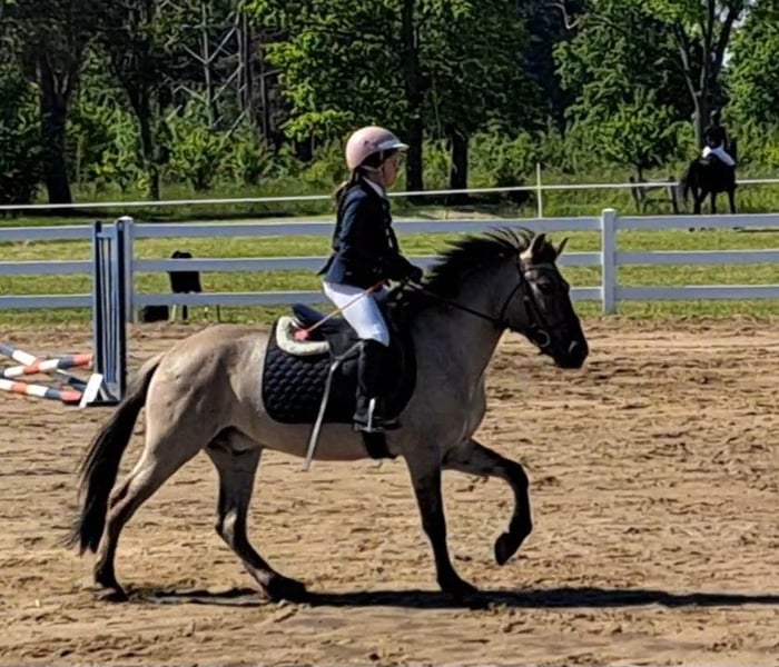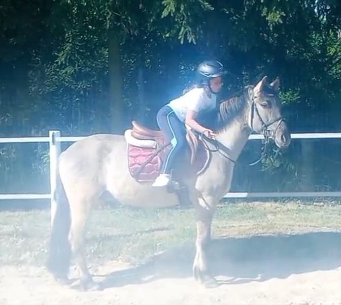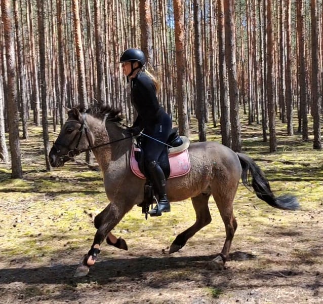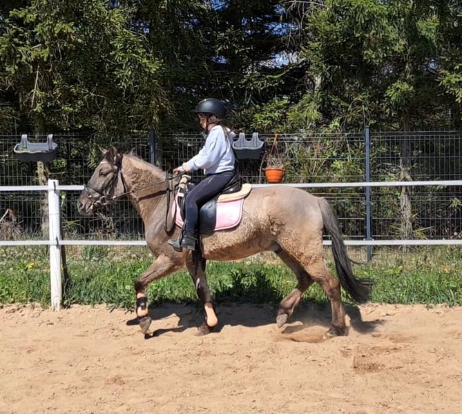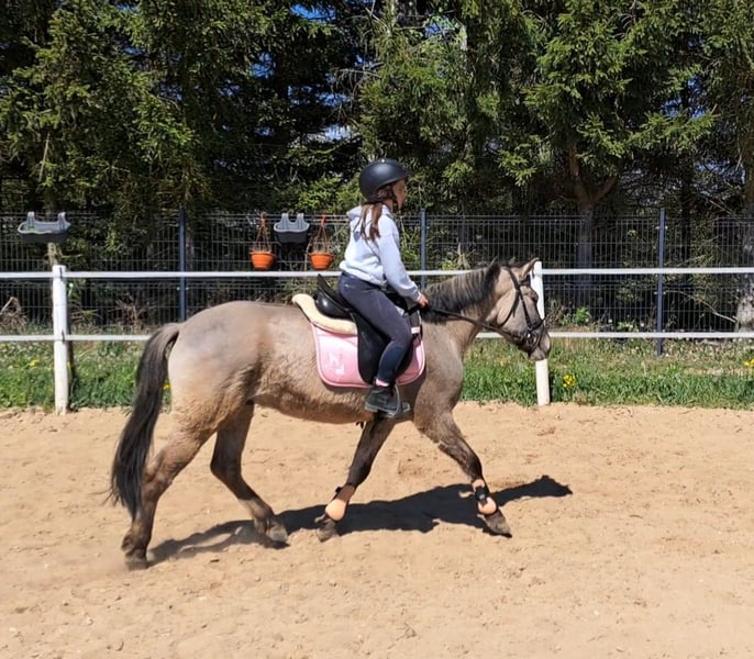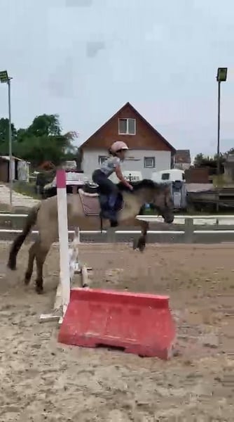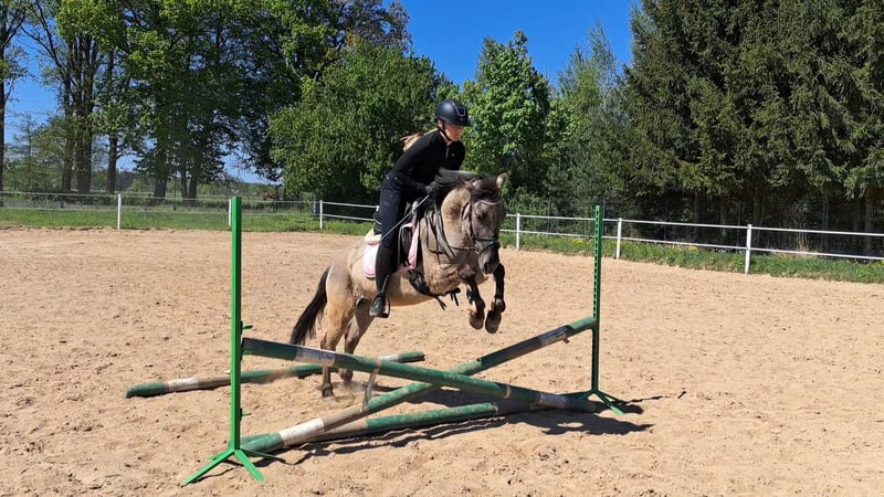 Konikwallach mit Springtalent - perfekt für Kinder! Fast 5 j.a ca. 1,40m Kleine Turniere geeignet Kinderlieb Schön angeritten und Gelände sicher. Mit Vollabstammung, Ohne Unarten Top Gesund Offenstall geeignet Standort nähe Görlitz Videos vorhanden. Transport möglich