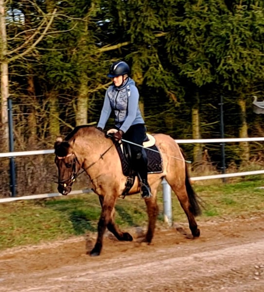 Beautiful Maylo 💗🎠🍬🥕💯 Conic gelding – perfect for children! Almost 4 years old, approximately 14.2 hh (still growing) Very kid-friendly Well-trained under saddle and safe in the terrain, even alone Enjoys jumping Full pedigree No bad habits Excellent health Suitable for open stable keeping 42 🥕🥕 Location near Görlitz Videos available Transport possible