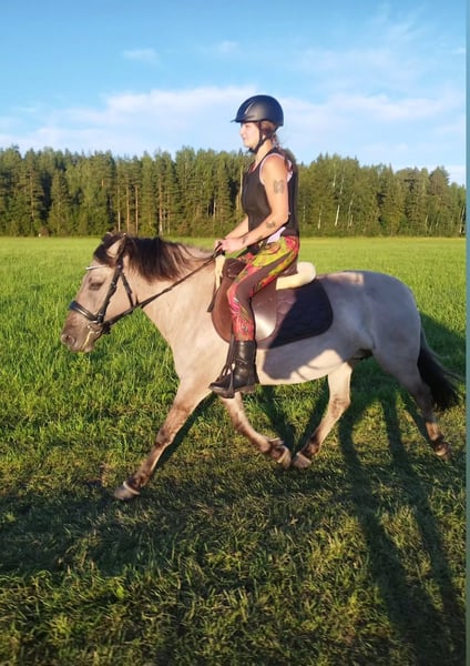Healthy konik mare with good and very comfortable gaits, nice, comfortable jump. Forward going, quick and stable gaits. Good for trailrides too. Good broodmare too, fertile, easy pregnancy and birth. Have had 2 beautifull and healthy foals. Can live outside 24/7. No bad habits. Teeth and hooves done regularly.