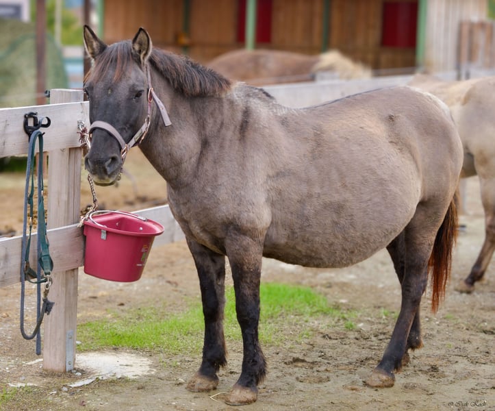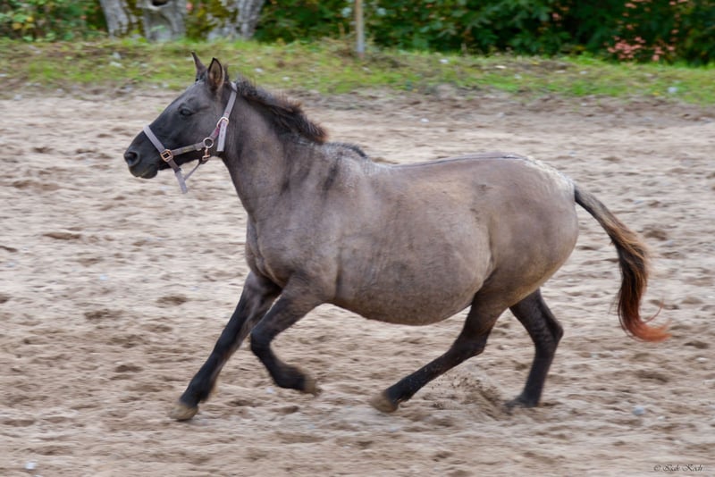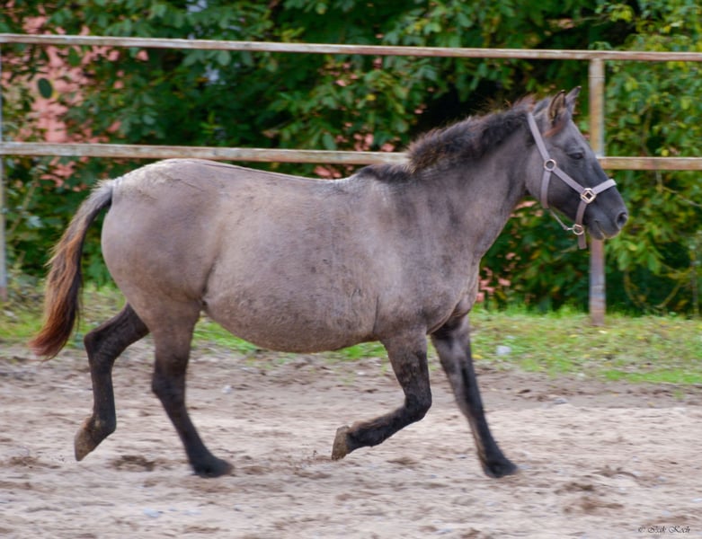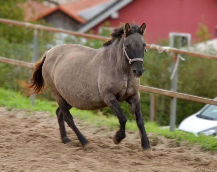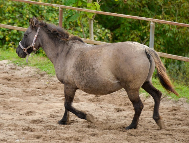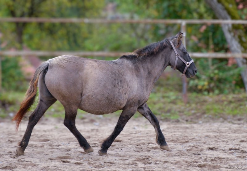Due to unforeseen professional changes and resulting time constraints, I am looking for a new home for my Konik mare Kalina (strongly built, 12 years old, approximately 1.36m/1.37m tall), where she will be loved and given a new purpose. She is ridden (also by teenagers), but urgently needs several months of regular groundwork and muscle building. She comes from a grazing project in Belgium, where she has already had several foals. As a result, she has a connective tissue weakness and a slight swayback. None of this causes her any problems. She runs, jumps even, and was regularly ridden in the terrain, in the arena, and in the paddock by her previous owners. She is looking for someone she can trust 100%, who will walk with her, do groundwork, groom her, pamper her, and simply show her that life can also be beautiful. Kalina is initially quite skeptical and needs some time to get used to new people. However, once she does, she is an absolute cuddle and reliable pony. She especially loves children and teenagers. Kalina is a great aunt pony and has "adopted" a non-related Konik foal with us (this one is also for sale). I will only part with Kalina if everything fits 100%. She is a wonderful soul of a pony and just wants to find her place in a family. I explicitly offer her as a rideable companion, as during the winter months, only groundwork should be done with her for muscle and conditioning building. Walking, pole training, horsemanship, liberty dressage... all of this is fun for her and she enjoys participating. Kalina is of course vaccinated, regularly dewormed, and goes barefoot (a farrier comes every 4-6 weeks). She has a Belgian equine passport. A good home is more important than the price. No sale to dealers or riding schools (she needs HER person). A sale with stable binding in 74740 Adelsheim-Hergenstadt is possible. Here she would still be liability and accident insured within the herd. These costs would thus be eliminated for another year. Have I sparked your interest? Then get in touch and get to know Kalina :)