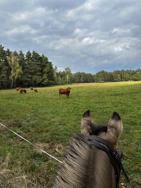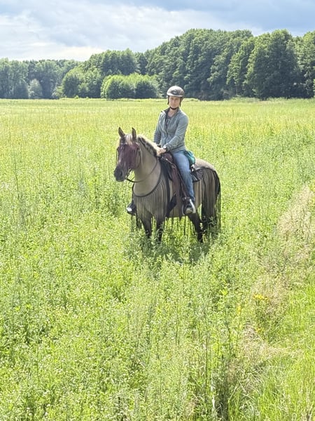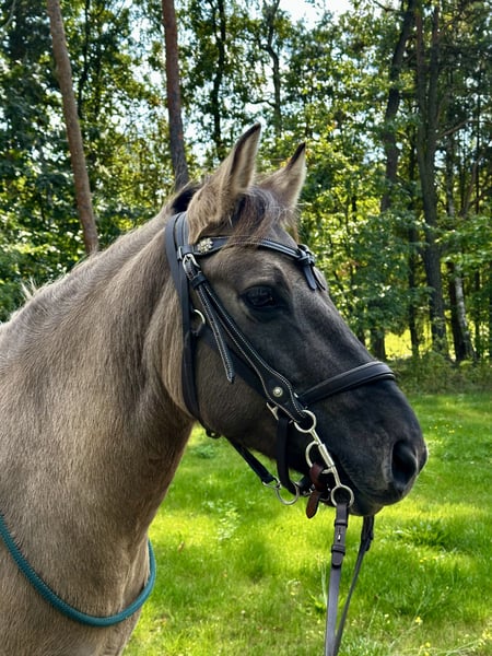 Aus meinerseits persönlichen Gründen gebe ich diese sehr sensible Stute ab. Bitte den Text bis zum Ende lesen. Nobi- ein Pferd für bereits erfahrene Reiter, KEIN Anfängerpferd, KEIN Kinder-oder Schulpony, KEINE Händler!!! - 12 Jahre alt - gesund - 1,38 m groß (kein Gewichtsträger) - barhuf (schmiedefromm, auch beim Beschlagen) - zaunsicher - straßensicher (Autobahnbrücken, Motorräder, Trecker, Unterführungen etc) - Hunde, Rinder, Esel gewöhnt - lässt sich nach kurzem Zögern verladen, stressfrei und ruhig beim Fahren - eher rangniedrig - unkompliziert in der Fütterung - geimpft - regelmäßig entwurmt - Zähne regelmäßig kontrolliert Nobi ist im allgemeinen Umgang sehr nett, Führen, Putzen, Anbinden, alleine oder in der Gruppe spazieren oder Reiten ist bei uns problemlos möglich. Sie ist ein extrem ausdauerndes, lauffreudiges, intelligentes aber sehr sensibles Pony. Ich habe sie aus einem Reitbetrieb übernommen weil sie aktiv Reiter testet und bereits einige unsichere Reiter somit erfolgreich abgesetzt werden konnten. Sie schlägt dann gezielt Haken und schaut ob man sich halten kann. Auf dem Reitplatz versucht sie sich nach einer gewissen Zeit somit zu entziehen um vom Platz zu kommen. Manchmal lässt sie sich ungern aufhalftern, dreht sich dann weg oder geht aktiv in eine andere Richtung. Ich suche eine mental stabile Person die erfahren im Umgang mit sensiblen Tieren ist. Nobi ist eine tolle Begleiterin wenn für sie alles passt und sie ihrem Menschen vertraut. Im Gelände ist sie sehr sehr lauffreudig und gerne vorne. Hier kann sie sich auch mal vor einem Vogel erschrecken aber das Verhalten wie auf dem Platz hat sie bisher bei mir nur 1x am Anfang gezeigt und dann nicht mehr. Sie wird ausdrücklich nicht an Kinder, Jugendliche, Wiedereinsteiger etc. abgegeben. Sie kennt Offenstall, Wiese, 24/h Heu, mit oder ohne Heunetz und Heulage, alles gut verträglich. Boxenhaltung kennt sie nicht und hier fühlt sich auch nicht wohl. Es ist kein Notverkauf, Preis ist vb, sie wird nur in passende Hände abgegeben. Sie hatte bereits ein Fohlen und war eine sehr gute Mutter. Zucht würde für sie als neue Aufgabe auch in Frage kommen. Sie besitzt einen polnischen Equidenpass. Bei ernsthaftem Interesse freue ich mich über eine Nachricht.