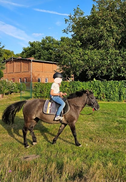 Leider haben wir durch berufliche Veränderungen nicht mehr genug Zeit, um uns um unsere Pony-Stute Sternchen ausreichend zu kümmern. Sie ist 13 Jahre alt und 1,40 m groß. Sie ist ein temperamentvolles Pony, hat viel Energie und Freude an der Arbeit. Allerdings braucht sie eine erfahrene konsequente Hand, die ihr Sicherheit und Klarheit gibt, sodass sie für Anfänger nicht geeignet ist. Sie ist gesund, lebt derzeit mit einer Friesen-Stute zusammen überwiegend auf der Weide und wird regelmäßig vom Tierarzt und Hufschmied betreut. Bei ernsthaftem Interesse an einer kurzfristigen Übernahme gern melden!