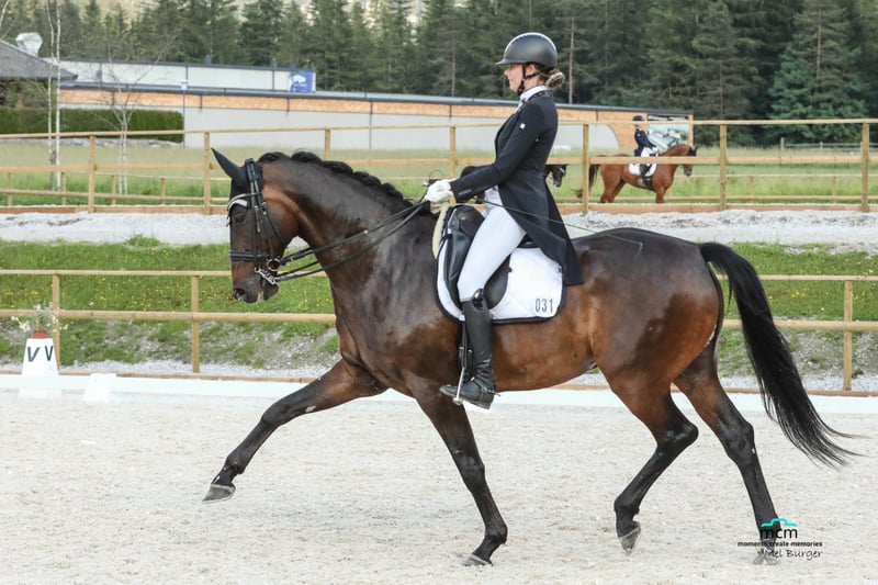 Franzi hat aktuell bereits über 20 Platzierungen in S* und S** platziert mit 71%, sowie mehrere Dressurpferde S Siege und Platzierungen mit bis zu 75%. An der Hand ist er bereits anpiaffiert. Im großen Viereck kommt er gut an und kann mit seiner Ausstrahlung beeindrucken, zudem bringt er genügend Potenzial für mehr mit. Seitdem er vier ist wurde er von der gleichen Amateur Reiterin geritten und ausgebildet, er war nie krank oder lahm, aktuelle Röntgenbilder ohne Befund vorhanden. Beim Ausreiten ist er total brav egal ob in der Gruppe oder alleine, Zuhause wurde er auf A-Niveau gesprungen, er war auch schon auf der Geländestrecke was er gut gemacht hat, dies wurde nicht weiter gefördert. Er ist sehr motiviert und intelligent, sehr leichtrittig, er ist sehr sensibel und ist daher nicht immer einfach und braucht einen Reiter der ihm viel Sicherheit gibt. Er ist kein Anfängerpferd und nicht geeignet für Angstreiter. Das Potenzial des hochveranlagten Pferdes kann die derzeitige Reiterin aufgrund von Studium leider nicht ausschöpfen, weshalb er schweren Herzens abgeben wird.