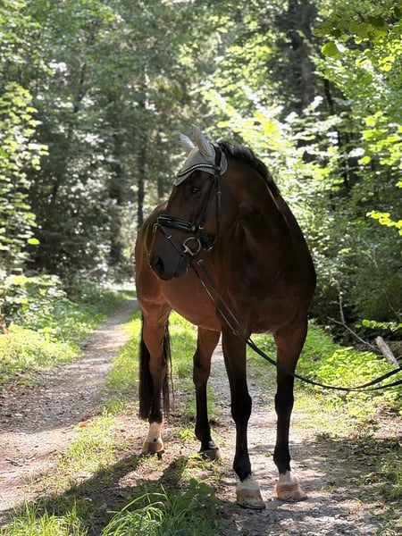 Zum Verkauf steht ein wunderschöner zehnjähriger KWPN-Wallach -vielseitiges Springtalent und zuverlässiger und gesunder Freizeitpartner . Mit einem Stockmaß von 163 cm bringt er sowohl die passende Größe als auch die nötige Präsenz mit, um im Parcours aufzufallen. Dieser Wallach braucht einen Reiter mit Erfahrung, Klarheit und Feingefühl, der sein Talent richtig einschätzen und gezielt fördern kann. Unter dem Reiter ist er sehr angenehm zu reiten, reagiert sensibel auf die Hilfen und bringt das nötige Go mit. Besonders im Springen überzeugt er durch seine Motivation - er zieht zu jedem Sprung hin und möchte immer über das Hindernis. Dressurmäßig verfügt er über gute Grundgangarten, sodass wir ihn uns perspektivisch auch sehr gut für die Vielseitigkeit vorstellen können. Er ist zudem sehr kinderfreundlich und macht jeden Quatsch mit. In der Haltung zeigt er sich unkompliziert: Er ist Boxenhaltung mit großem Paddock gewöhnt, braucht jedoch viel Bewegung und fühlt sich am wohlsten, wenn er möglichst viel draußen ist. Eine pferdegerechte Haltung mit regelmäßigem Auslauf ist daher Voraussetzung. Der Wallach ist schmiedefromm, stets tierärztlich begleitet, gesund und gepflegt. Eine kleine Ankaufsuntersuchung wurde bereits durchgeführt und war ohne Befund. Turniereinsätze fanden zuletzt nicht statt, eine solide Grundausbildung sowie Erfahrung bis A-Niveau sind vorhanden. Wir freuen uns auf deine Anfrage und stehen für Besichtigung und Proberitte jederzeit zur Verfügung!