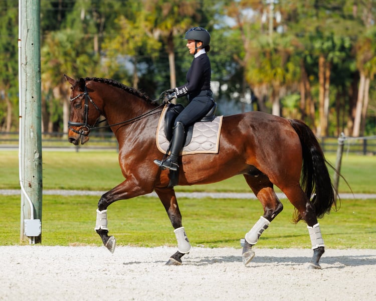 Kadorava is as talented as he is handsome with a sweet personality as the cherry on top of the perfect package. He has above average gaits, with a particularly spectacular canter that is sure to wow any judge. Due to no fault of his own he is slightly behind in training for his age but he more than makes up for it with a strong work ethic, excellent trainability, and a willing attitude. He would be the ideal partner for a Junior or Young Rider looking to finish developing him to the FEI levels, or would be equally suitable for an Adult Amateur looking for a talented and uncomplicated horse to continue to learn on. He is available in Wellington, Florida, USA