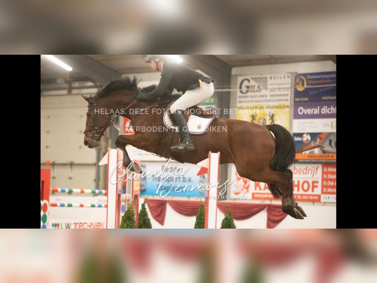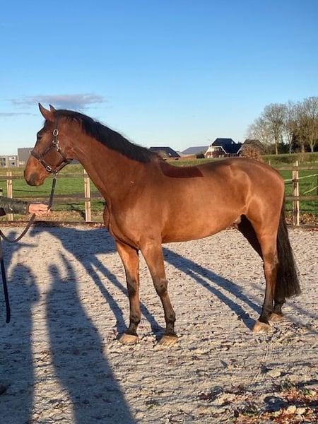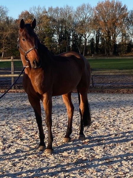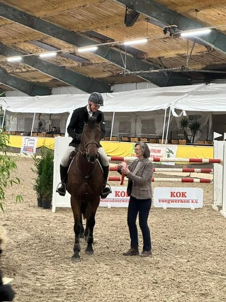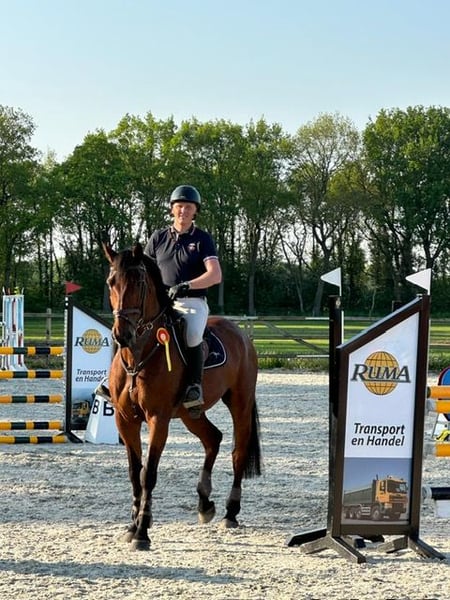 Nice and well-bred strong show jumping horse by Royal Feu x Carthago Mother is Cassandra van Carthago, who has offspring competing at 1.50/1.60 m. Jochie is super well-behaved in handling, loads easily onto the trailer, and has no stable vices or issues. This is a horse with a lot of quality that makes no mistakes in the arena. Jochie has competed with multiple riders in 1.20 m and 1.30 m classes, always placing in the ribbons. Current record: 1.30 m with 7 wins. With Jochie, you can also enjoy nice rides alone in the forest. He also gets along well with other horses in the field. Show jumping videos available via WhatsApp upon request.