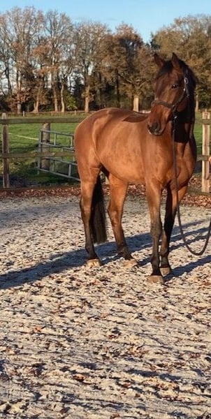 Cheval de saut fort, agréable à monter, légèrement accidenté, Royal Feu x Carthago La mère est Cassandra van Carthago, qui a produit des descendants sautant en 1,50 / 1,60 m. Le poulain est très gentil en main, monte facilement dans la remorque, n'a aucun défaut ou inconfort en box. C’est un cheval de grande qualité qui ne fait pas d’erreurs en parcours. Jochie a déjà couru avec plusieurs cavaliers en 1,20 m et 1,30 m, et se place toujours dans les prix. Actuellement en 1,30 m avec 7 points de victoire. Avec Jochie, il est aussi très agréable de faire de l’équitation seul en forêt. Il peut également cohabiter paisiblement avec d’autres chevaux au pré. Vidéos de saut disponibles via WhatsApp sur demande.