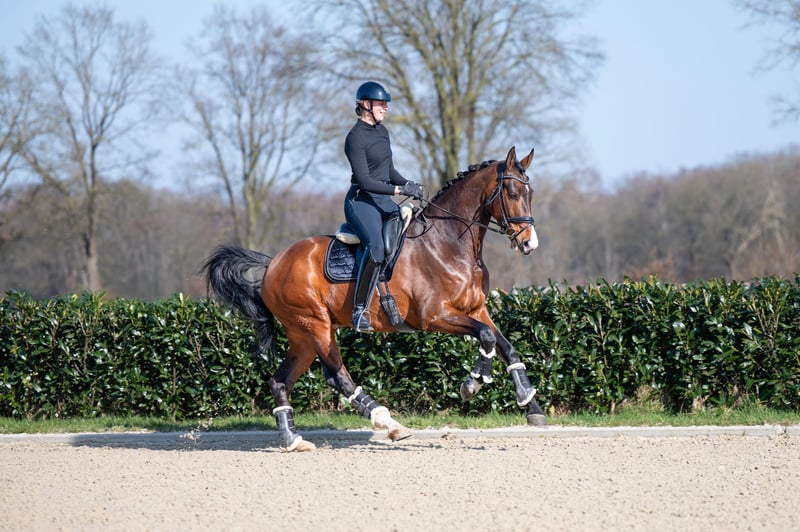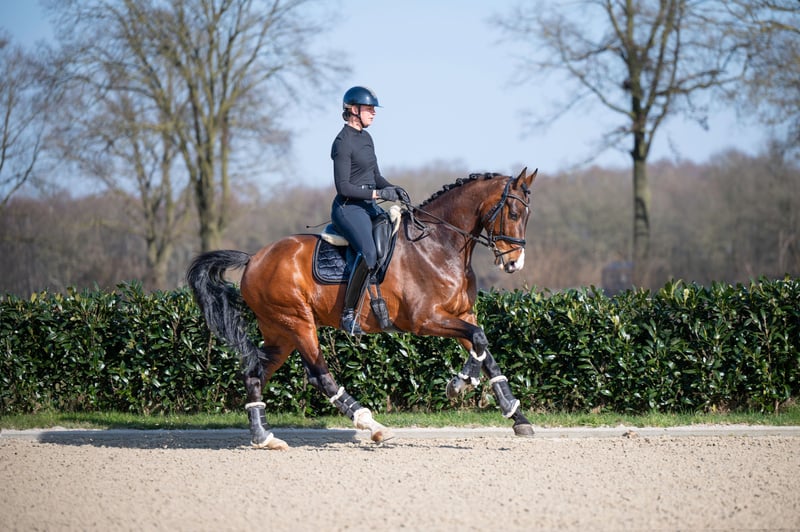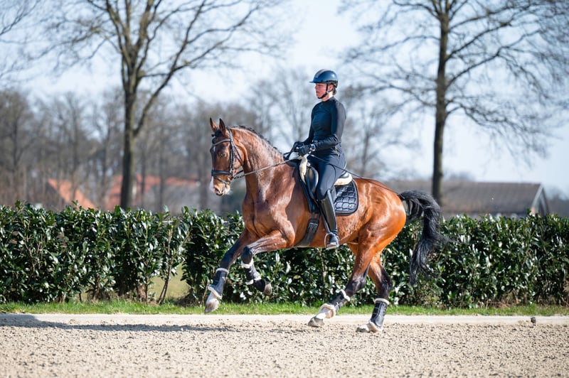 Don Tango B x Darnels I-Tango DH is an incredibly impressive gelding from 2013 with a height of 1.74m. He is a real eye-catcher with his brown color and makes an impression in the dressage ring. With his lineage from Don Tango B and Darnels, he has beautiful, grand movement and a lot of presence. With I-Tango DH, you have a reliable and stable partner in dressage.