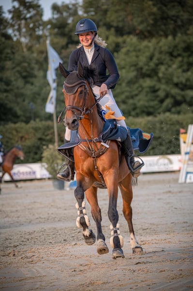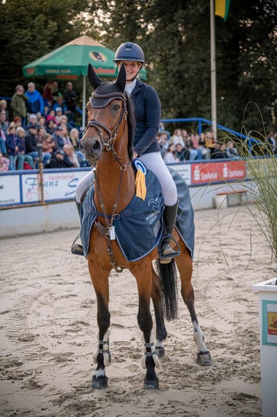 Nous vendons à contrecoeur notre hongre de 14 ans, "Hakan". Au cours des dernières années, il a été le fidèle compagnon de notre fille Emma, la portant en toute sécurité et avec succès à travers le sport. Hakan est un cheval de confiance absolue, qui accompagne son cavalier dans les bons comme dans les mauvais moments – un véritable "professeur" en parcours, capable d’ouvrir la voie vers le haut niveau de saut d’obstacles pour son nouveau propriétaire. Réussites & points forts : - Gagnant en S (2025) : placé à plusieurs reprises en haut du classement et victorieux à ce niveau. - Aachen Youngstars (2024) : a obtenu une excellente place dans un saut S** dans le cadre prestigieux d’Aachen. Caractère & qualités à l’obstacle : - En parcours : incroyablement rapide et agile ! Hakan tourne sur le plat et est extrêmement compétitif en barrage, sans devenir "chaud" ou incontrôlable. Il reste toujours fidèle à son cavalier. - Honnêteté : en S, il doit être monté de manière adaptée au saut. C’est un partenaire équitable qui demande et développe les compétences du cavalier – il montre ses limites sans jamais être injuste. - Dressage : très léger aux aides et agréable à la réception. - Comportement : un véritable trésor dans la manipulation. Facile à gérer pour tout le monde (même pour les enfants), débourré et ferré sans problème. Données clés : - Âge : 14 ans - État : en parfait état, en bonne santé et en pleine préparation. Des radiographies datant de 2022 sont disponibles, mais peuvent être renouvelées lors d’une visite d’expertise si nécessaire. - Domaine d’utilisation : idéal pour les enfants, les cavaliers en transition (pony vers cheval) ou les amateurs ambitieux recherchant un cheval avec une "garantie S". - En résumé : Hakan n’est pas un simple outil de sport, mais un partenaire avec un cœur. Nous souhaitons lui trouver un nouveau foyer où il pourra rendre un jeune cavalier aussi heureux que nous l’avons été. Motif de la vente : La seule raison de cette vente est le développement professionnel d’Emma. Elle s’est récemment lancée en tant qu’indépendante et ne peut plus consacrer suffisamment de temps à tous ses chevaux. Comme Hakan mérite de continuer à bénéficier de l’attention et du soutien d’un cavalier, nous cherchons pour lui une nouvelle famille idéale. Notre souhait est qu’il accompagne encore un jeune cavalier vers le haut niveau et qu’il guide son nouveau propriétaire avec autant de sécurité et de succès qu’il l’a fait pour Emma. Des vidéos sont disponibles sur demande, ou peuvent également être consultées sur Rimondo, Clip My Horse et la page Instagram d’Emma Grüntjens !