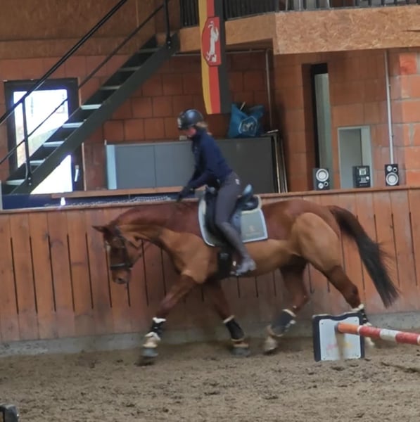 Se ofrece a la venta mi caballo KWPN, nacido en 2011. Con su llamativo pelaje alazán y una altura de 1,70 m, es un verdadero tesoro tanto en apariencia como en carácter. El versátil compañero de doma impresiona por su calidad básica agradable, su temperamento equilibrado y su disposición a complacer siempre al jinete. Está bien entrenado, es sensible en el manejo y, tanto en el campo como en grupo, es un caballo de confianza. El caballo está sano, revisado regularmente y preparado para un nuevo desafío. Es adecuado para jinetes de ocio de nivel avanzado. Es importante saber que, debido a su alergia, necesita un alojamiento libre de polvo y prefiere una alimentación con heno ensilado. No requiere medicamentos y, con la correcta atención, puede soportar cargas completas. Actualmente, vive en un paddock abierto, recibiendo por la mañana y por la tarde media ración de Gastro de Höveler y una cucharada de pienso mineral. Además, recibe forraje a libre acceso las 24 horas del día. Estoy encantado de responder cualquier otra pregunta al respecto. También puedo enviar la documentación veterinaria en caso de interés serio. Si estás interesado o deseas más información, no dudes en contactarme. Las visitas y pruebas de monta se pueden concertar previa cita. Para evitar el turismo ecuestre, se cobra una tarifa de 30 euros por la prueba de monta.