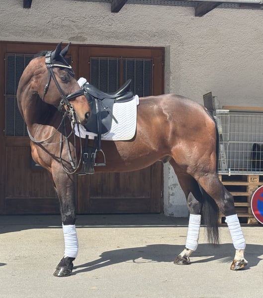 Zum Verkauf steht ein 17-jähriger Wallach mit viel Erfahrung und einem besonderen Charakter. „Enjoy“ wurde bereits bis in den höheren Sport ausgebildet und hat sich dadurch als zuverlässiger und lehrreicher Partner bewährt. Er eignet sich hervorragend als Lehrmeister für fortgeschrittene Reiter, die von seiner Erfahrung profitieren möchten. Aufgrund seines sensibleren und speziellen Handlings wird er ausschließlich in erfahrene und einfühlsame Hände abgegeben. Er ist kein ,,böses,, Pferd – im Gegenteil: Mit dem richtigen Menschen an seiner Seite zeigt er sich loyal, fein und sehr kooperativ. Aktuell befindet sich Enjoy nach einer überstandenen Krankheit (Magen) wieder im Aufbau. Er ist bereits voll belastbar und zeigt unter Bewegung keinerlei Einschränkungen. Zu beachten ist, dass er ein sogenanntes Magenpferd ist, weshalb ein entsprechendes Management erforderlich ist und er schwer zunimmt. Wir wünschen uns für ihn einen liebevollen Platz bei einem Menschen, der ihn versteht, schätzt und ihm die nötige Zeit und Aufmerksamkeit schenkt, die er verdient. Bei ernsthaftem Interesse gebe ich gerne weitere Informationen und freue mich über eine Nachricht 😊
