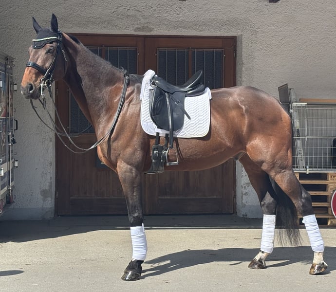 For sale is a 17-year-old gelding with extensive experience and a special character. "Enjoy" has already been trained up to higher-level competition and has proven to be a reliable and instructive partner. He is an excellent teacher for advanced riders who wish to benefit from his experience. Due to his sensitive nature and specific handling needs, he is only available to experienced and empathetic owners. He is not a "bad" horse – on the contrary: with the right person by his side, he shows loyalty, finesse, and great cooperation. Currently, Enjoy is in recovery after overcoming a stomach illness. He is fully fit and shows no restrictions during movement. It should be noted that he is a so-called "stomach horse," which requires appropriate management, and he tends to gain weight slowly. We are looking for a loving home where someone understands, appreciates, and is willing to give him the time and attention he deserves. If genuinely interested, I am happy to provide further information and look forward to your message 😊
