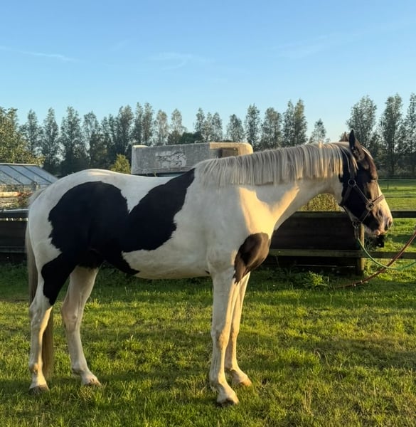 Mooi platenbonte veulen. Ruin met goed karakter. Kan je naar je hand zetten en zelf zadelmak maken. Is Gechipt, ontwormd en bekapt. Moeder is aanwezig. Geregistreerd bij KWPN.